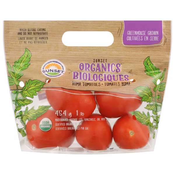 Greenhouse-grown Roma tomatoes