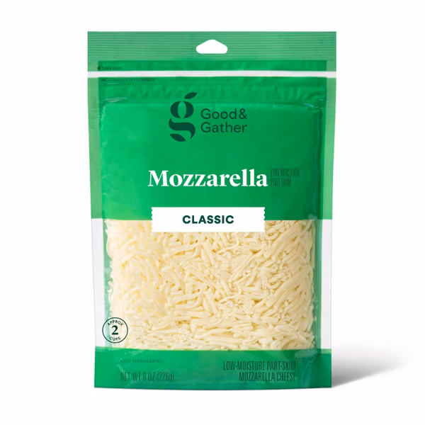 8oz package of shredded low-moisture part-skim mozzarella cheese brings a versatile option to your kitchen